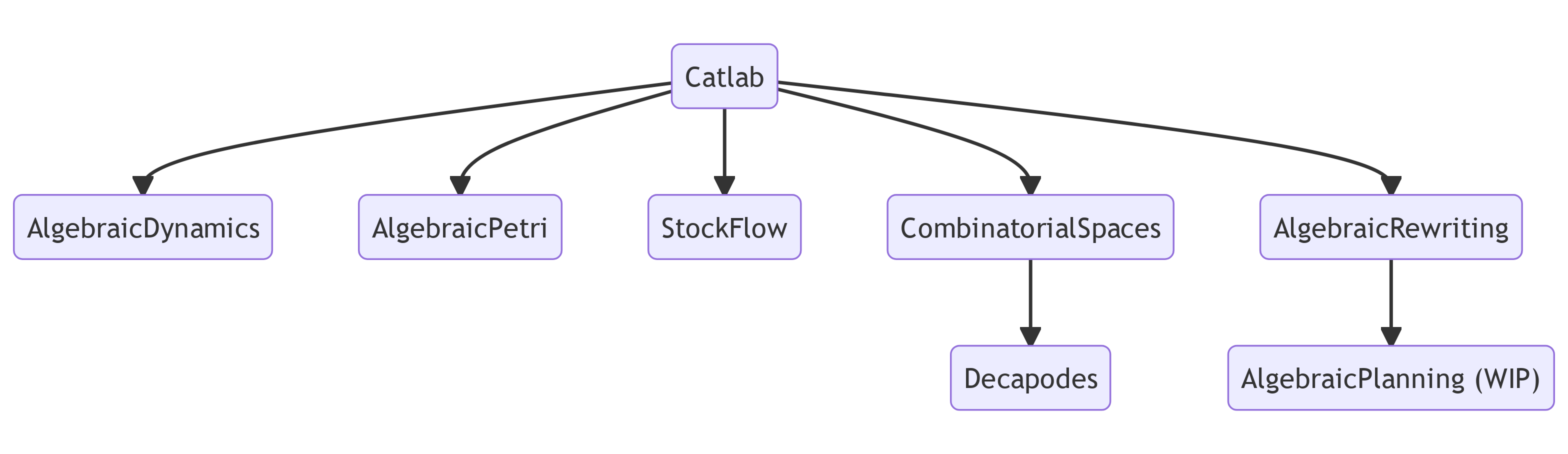 AlgebraicPetri)Decapodes)AlgebraicDynamics)All of these algebras are implemented in AlgebraicJulia, with benefits arising from the shared abstraction.
